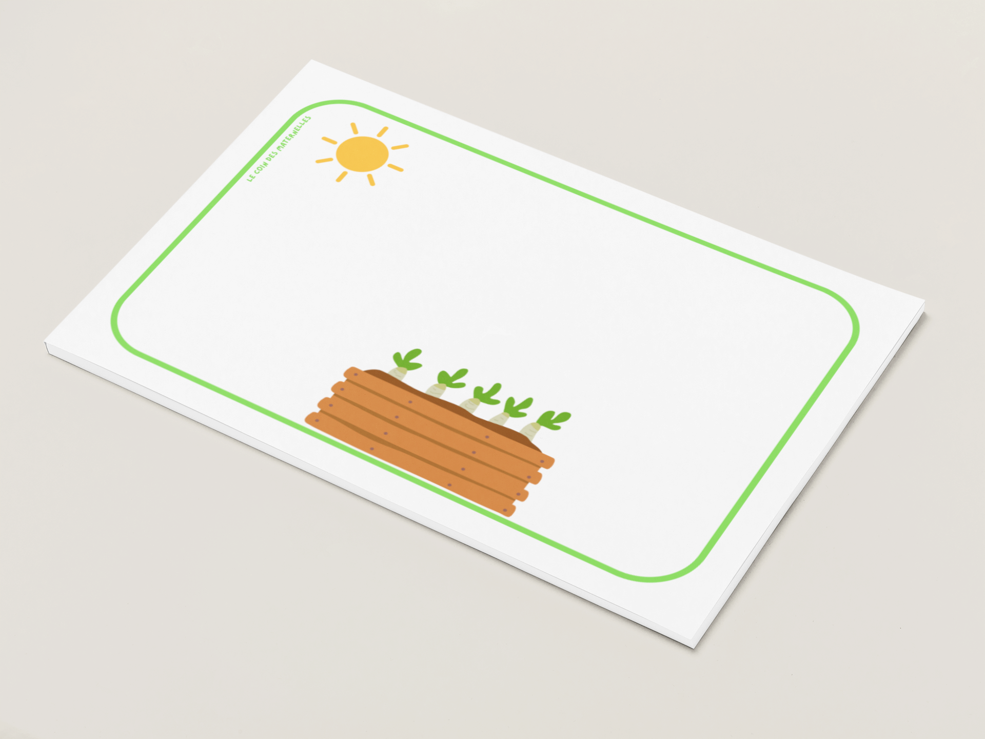 Le document contient également 4 grandes fiches vierges (avec uniquement le décor), et 4x chaque élément (pour que l’activité puisse être mise en atelier de 4 enfants). L’enfant prend une grande fiche vierge, choisit une carte à reproduire et place les éléments au bon endroit par rapport à cette carte, lorsqu’il a terminé une carte, il retire les éléments et peut recommencer avec une autre carte modèle 😉