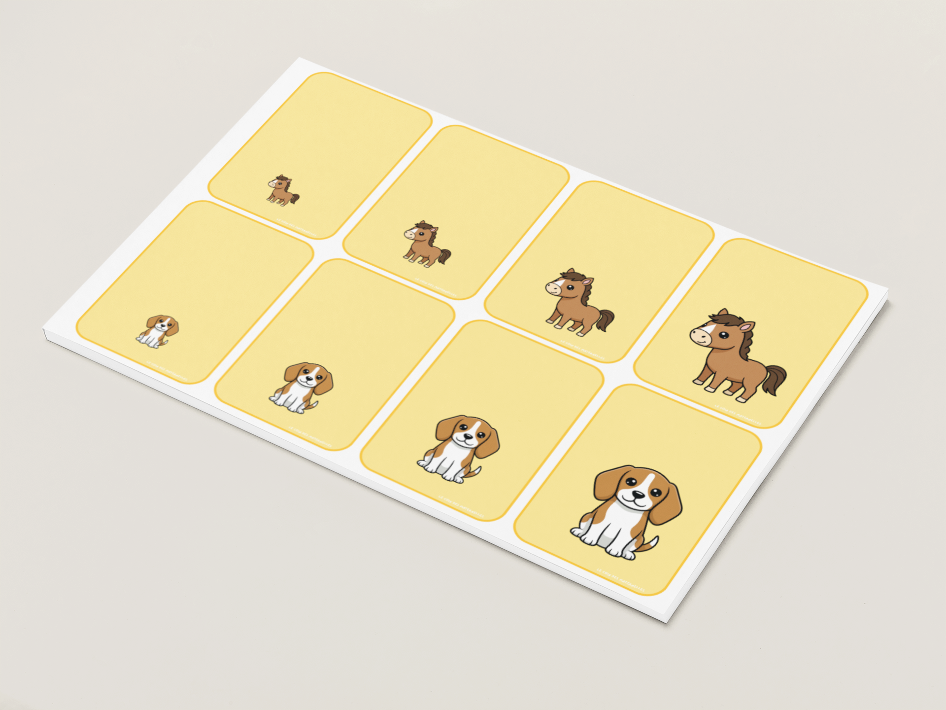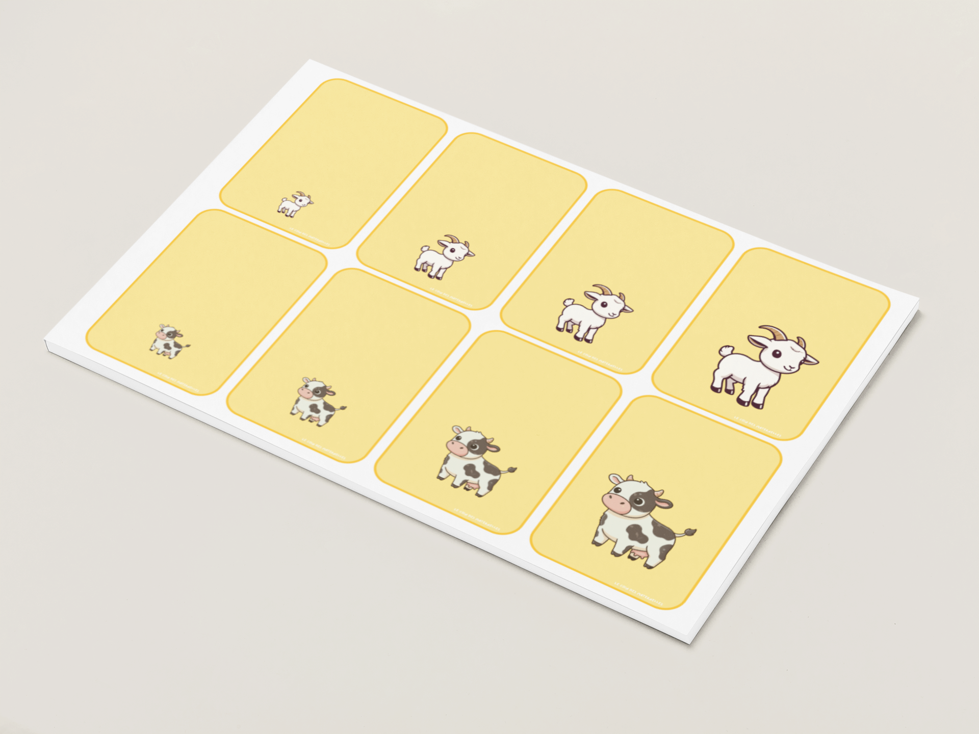 Les 48 cartes comprennent 12 animaux différents –> 4 tailles par animal