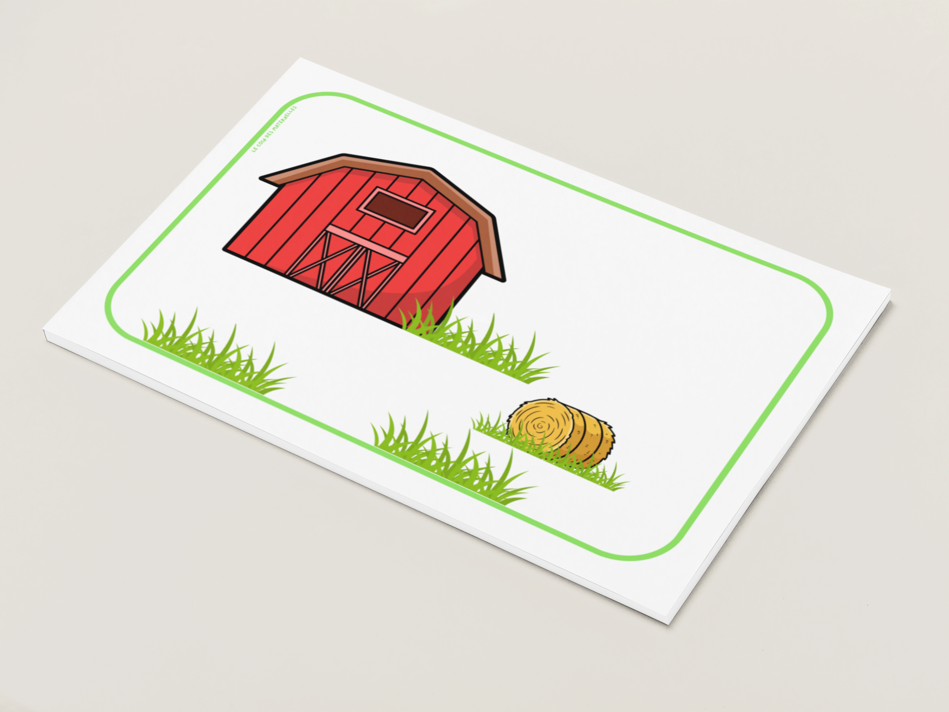 Ce document contient le niveau 2 des cartes de topologie sur le thème de la ferme et contient en tout 20 cartes « modèles ». Niveau 2 = 3 éléments à replacer