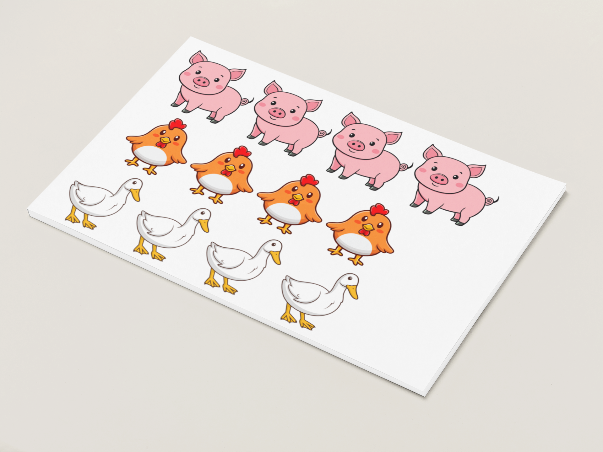 Ce document contient le niveau 1 des cartes de topologie sur le thème de la ferme et contient en tout 20 cartes « modèles ». Niveau 1 = 2 éléments à replacer